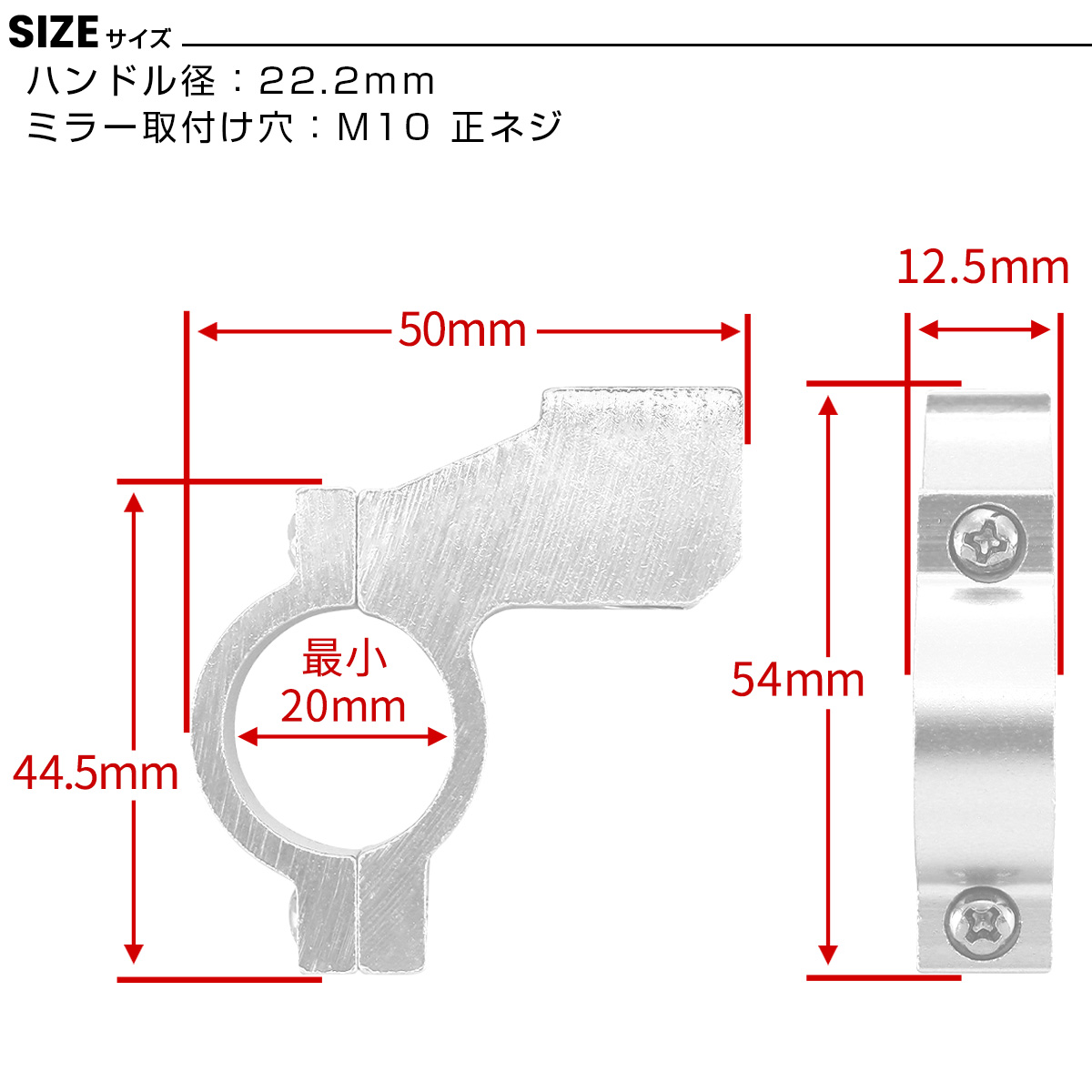 22.2mmのハンドルバー、M10 正ネジのミラーが取付可能です。