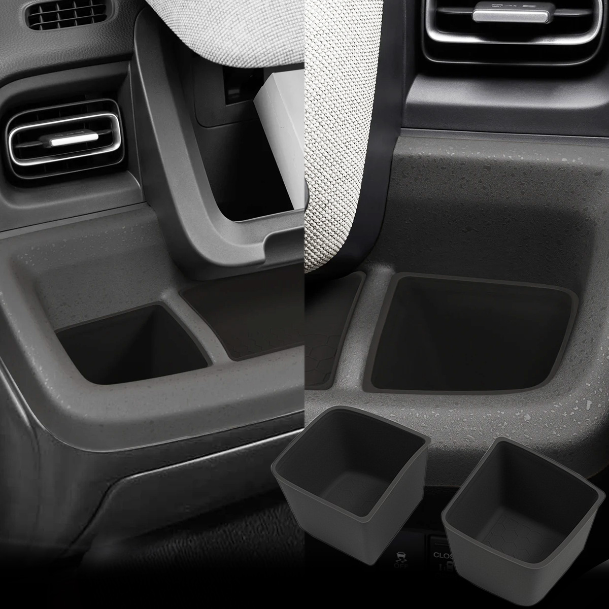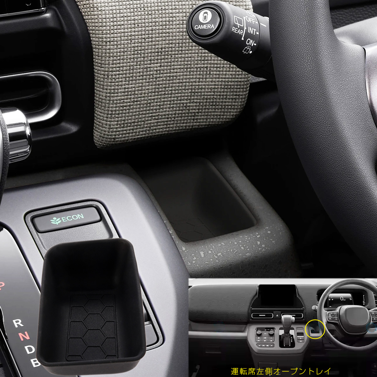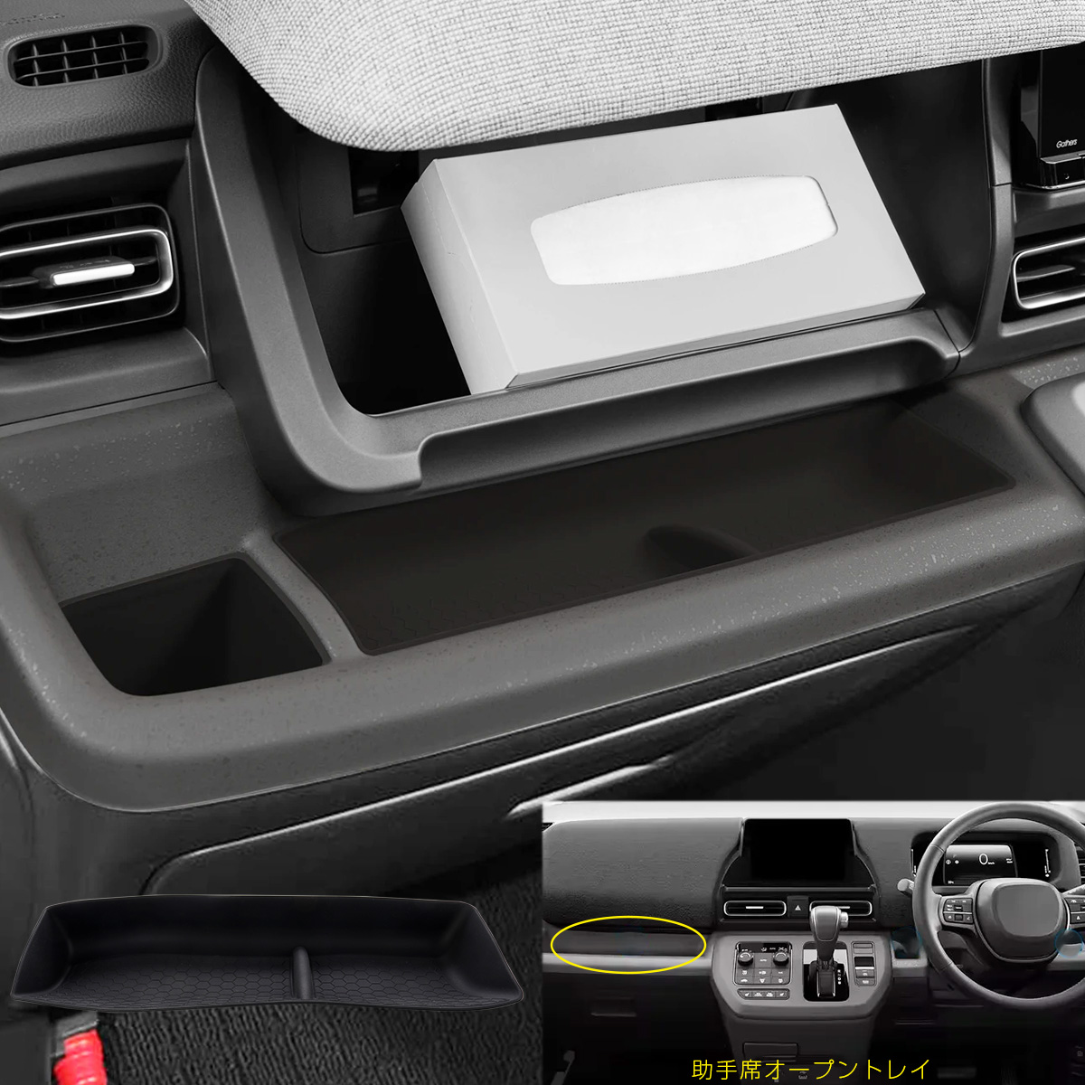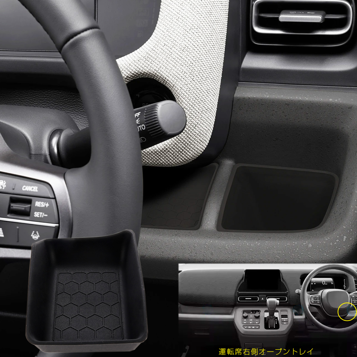 運転席、助手席にあるトレイに設置し車内の小物を整理するのに便利なインナーマット。