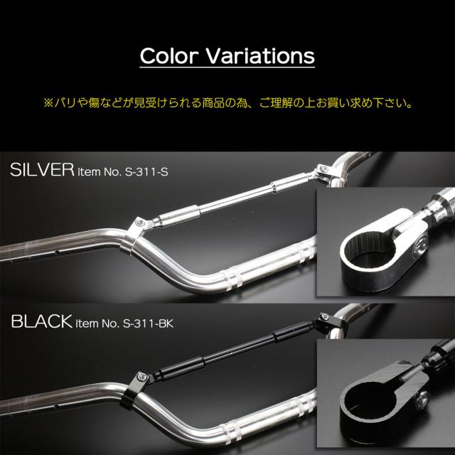 ブレースバーの付いていないノーマルのハンドルバーや、社外品のハンドルバーに強度付属を感じている方に使ってもらいたい商品です。