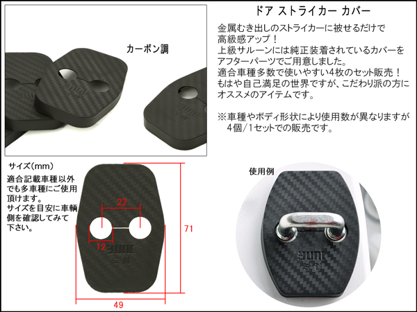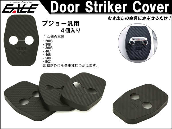 プジョー 汎用 カーボン調 ドア ロック ストライカー カバー 4枚セット