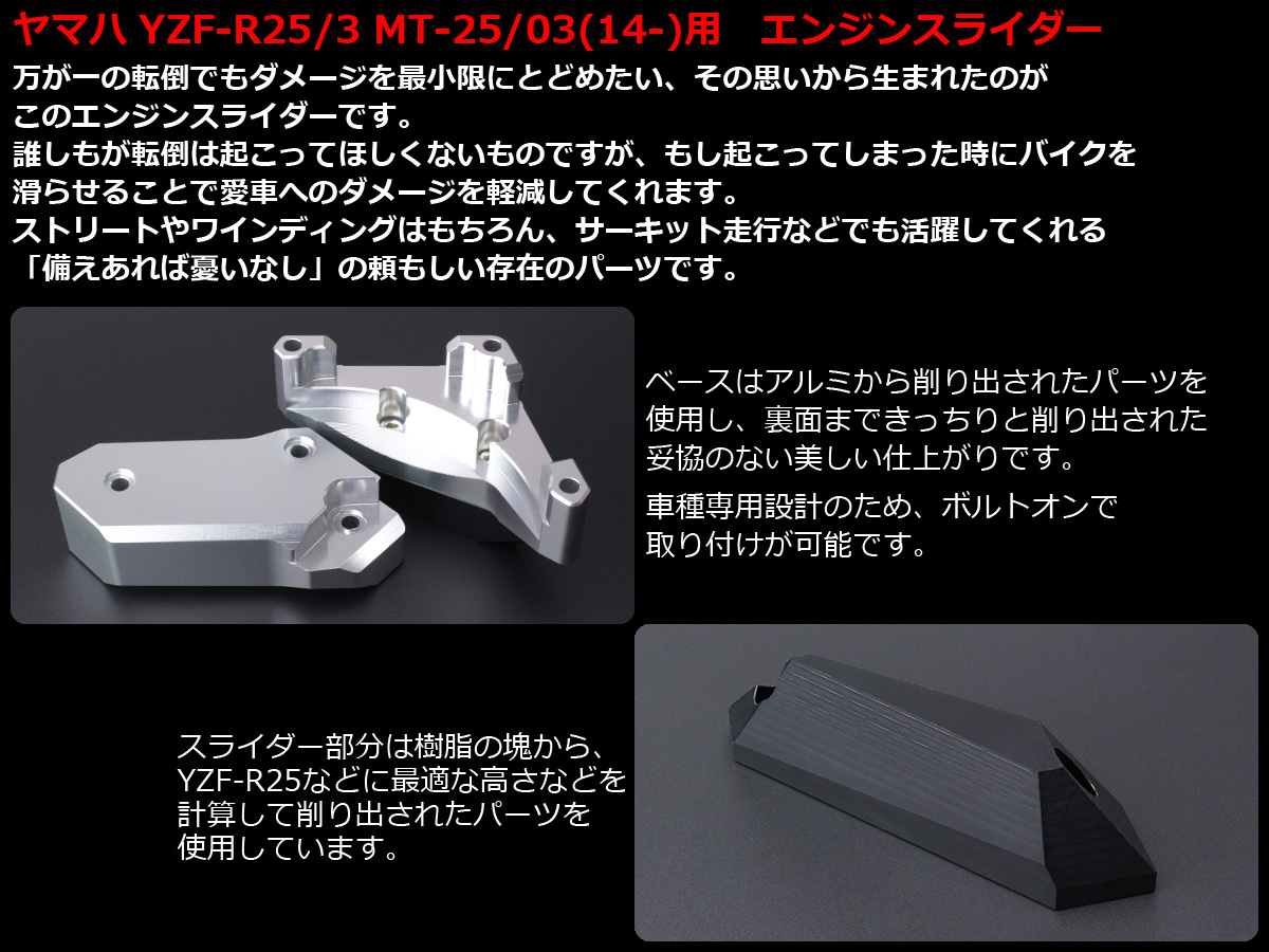 | ■ 適合車種:YZF-R25 RG10J YZF-R3 RH07J MT-25 RG10J MT-03 RH07J 全車種、全年式対応 |