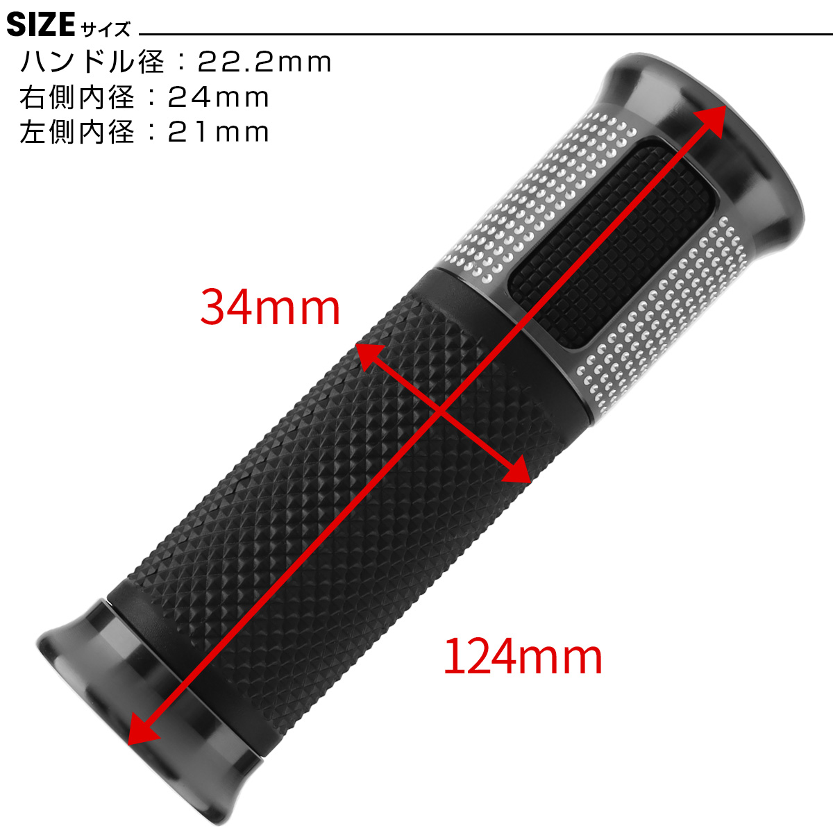 | ■商品名:アルミ&ラバー製 汎用 カスタムグリップ |