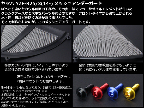 | ■ 適合車種:YZF-R25 RG10J YZF-R3 RH07J 全車種、全年式対応 |