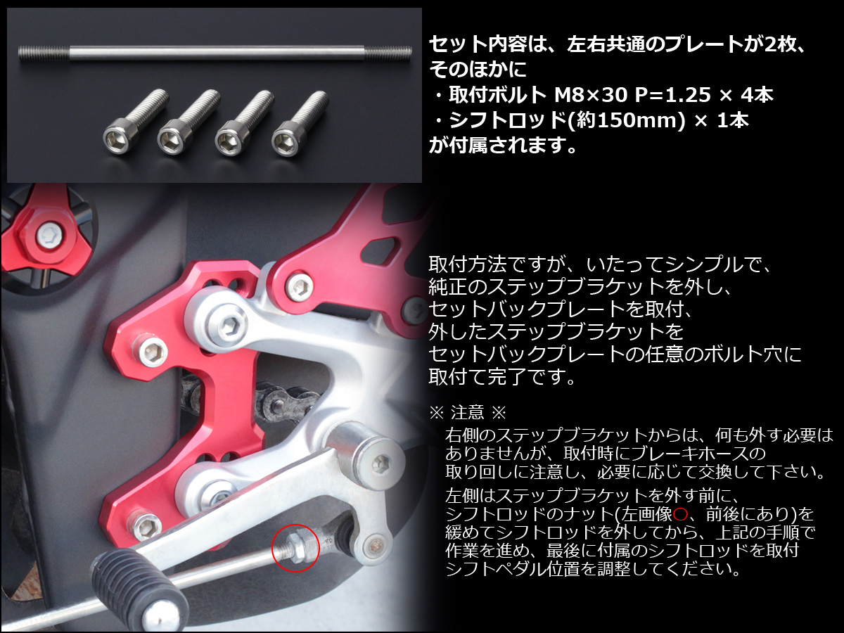 簡単な取り付けでステップのポジションを変更できるパーツが、このセットバックプレートです。