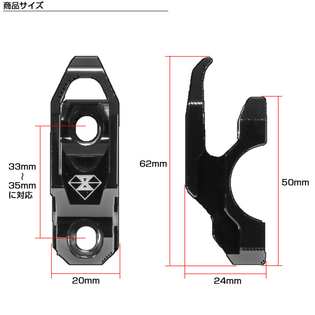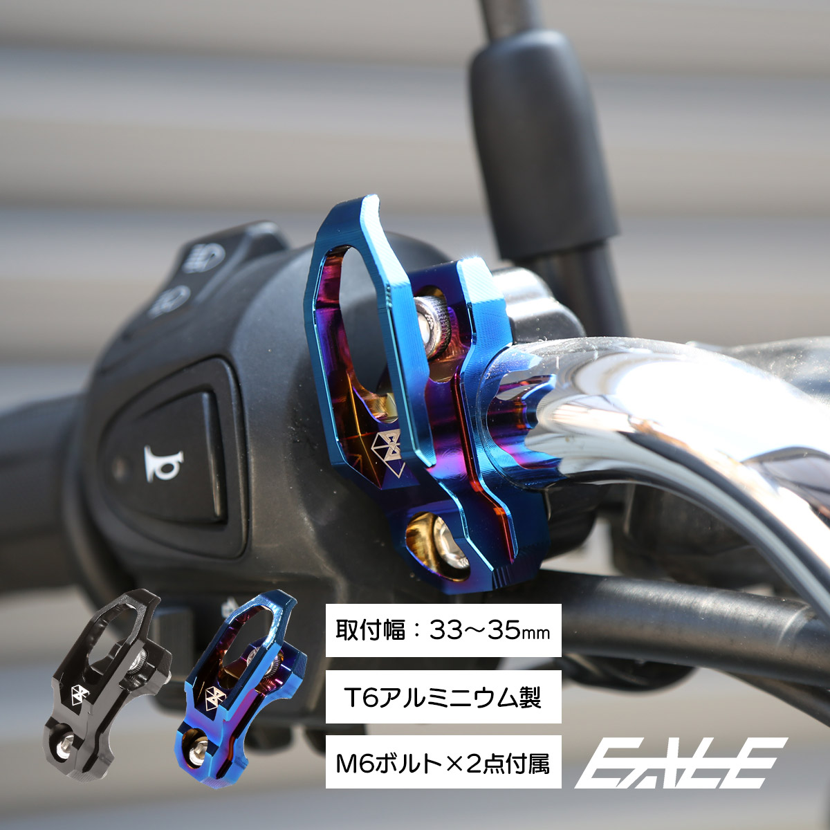 ハンドルクランプと一体設計。サイズさえ合えばミラーホルダーやレバーに取り付けが可能です。