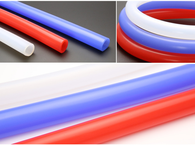 耐熱、耐候性に優れ、曲げても内径変化の起こりにくいシリコンチューブ。