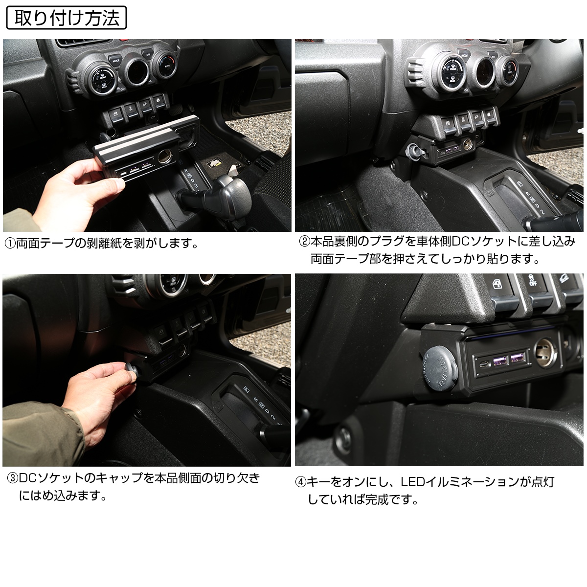 純正DCソケットに差し込むだけで取り付けも簡単に行えます。