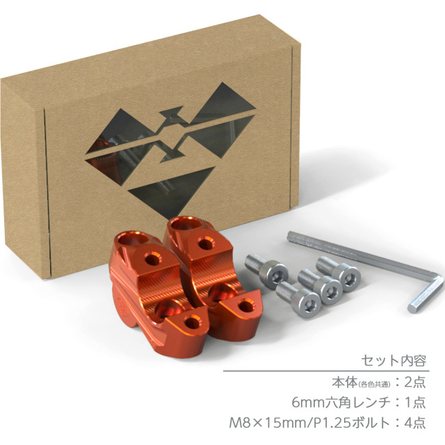 ※本品はKTM スモールDUKE純正のファットバー(テーパーハンドル)のサイズに適合した商品で、一般のハンドルバーやファットバーには適合致しません。 ※アップハンドル化によりワイヤーケーブルなどの取り回しの修正などが必要となる場合がございます。 ※付属品は商品画像を参照下さい。 ※走行前にボルトの緩みやガタがないか十分注意してからご使用頂きますようお願い致します。 |