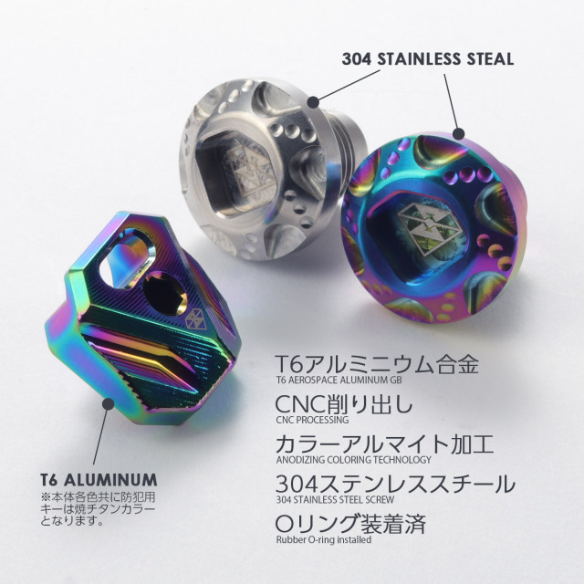| ■素材:キャップ本体(SUS304ステンレス)、 防犯キー(T6アルミ) |