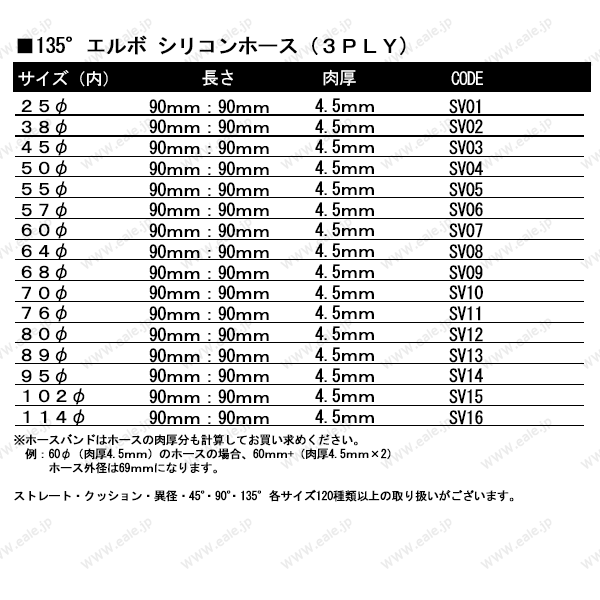 | ■ シリコンホース 135°エルボ |