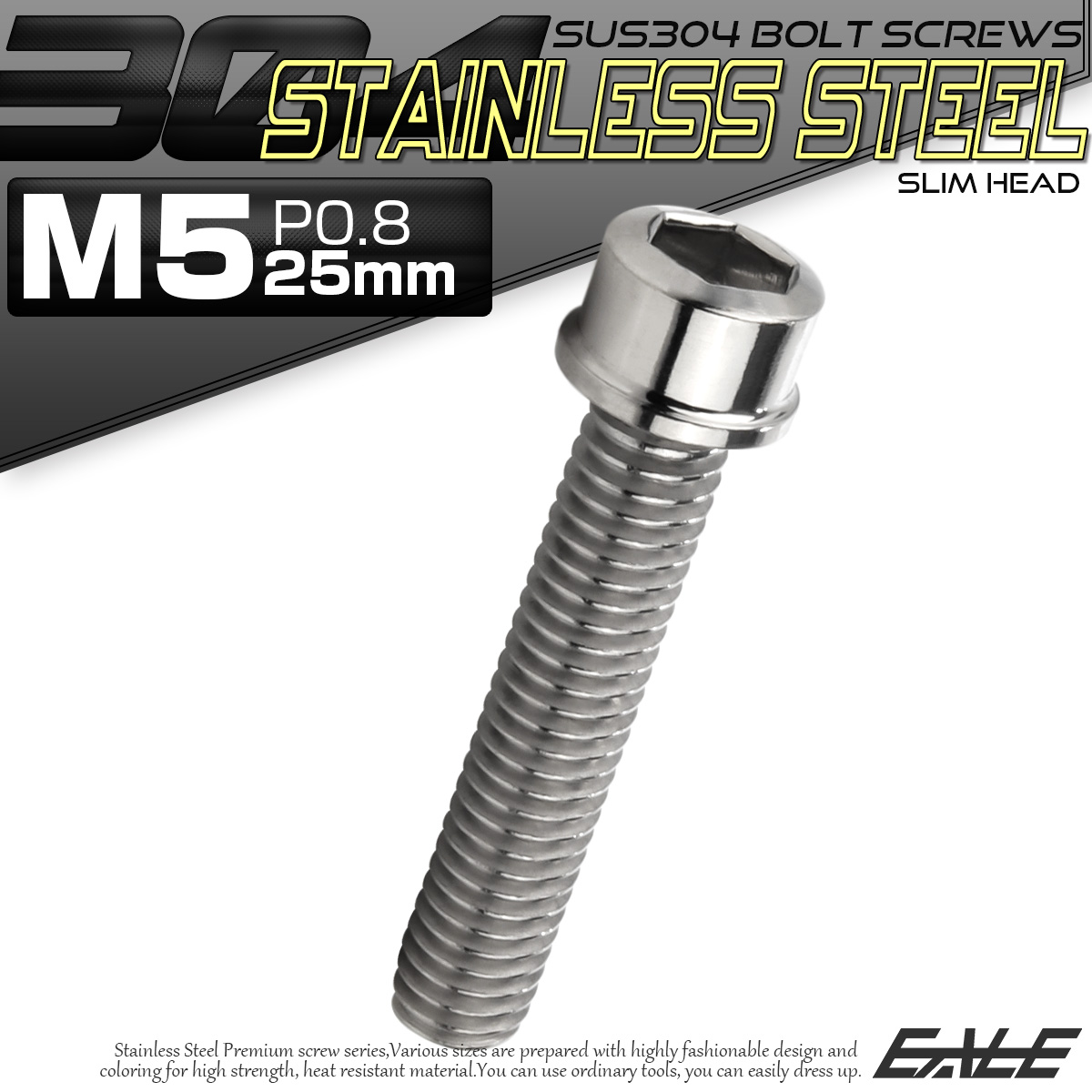 対候性に優れたSUS304素材を用いたキャップボルト。