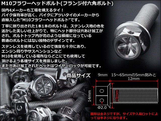バイク保有率が高く、バイクにアツいタイのメーカーから直輸入した「M10フラワーヘッドボルト」です。