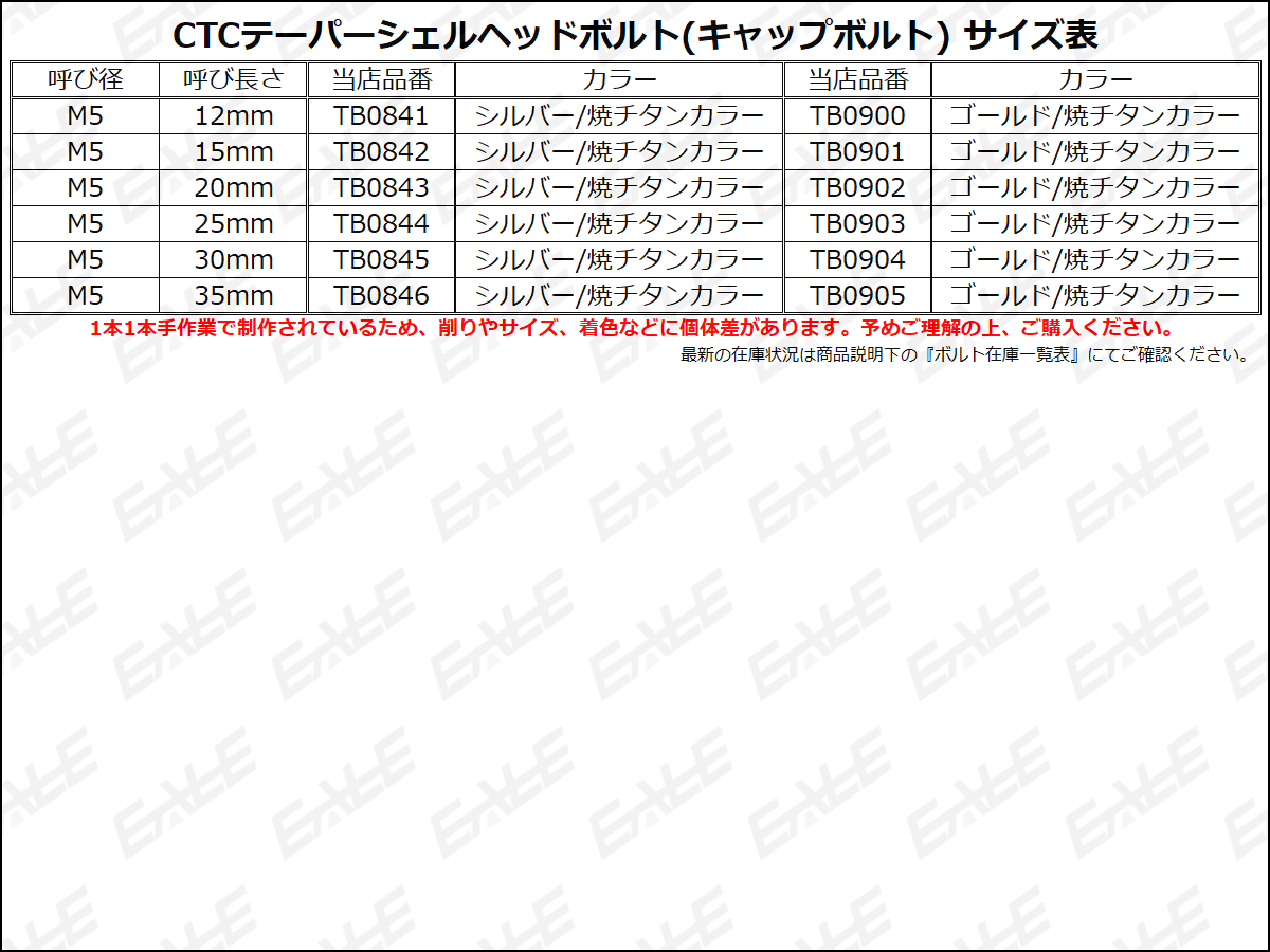 メーター周辺やタンクキャップ、キャブ周りなどM5が使用されている場所なら色々な箇所に使用して頂けるよう各種サイズを用意しました。
