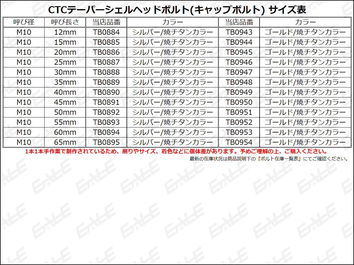 M10×65mm ステンレス 削り出し 2色 テーパー シェル ヘッド ボルトキャップボルト フレームやエンジン周りに ゴールド 焼チタンカラー TB0954 【メール便可】