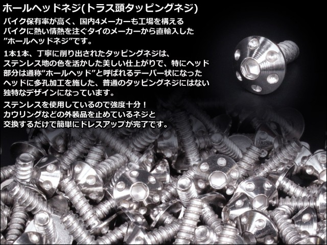 M4×12mm ホールヘッドネジ タッピングネジ ステンレス 削り出し トラス頭 シルバー TC0061 【メール便可】