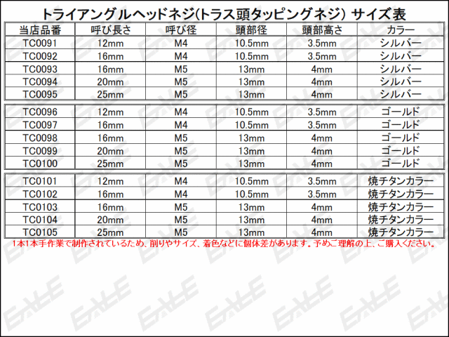 種類 : トラス頭タッピングネジ