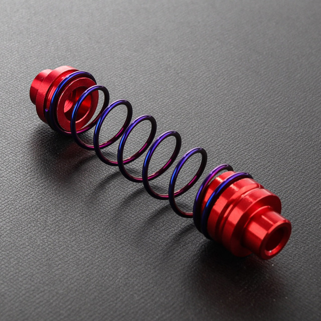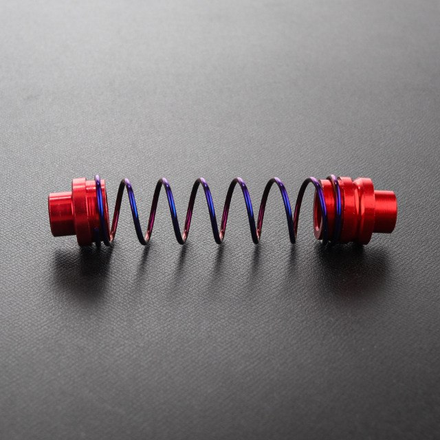 スペーサーはカラーアルマイト処理されたアルミ製で、スプリング部分もきれいなカラーでドレスアップにおすすめ。