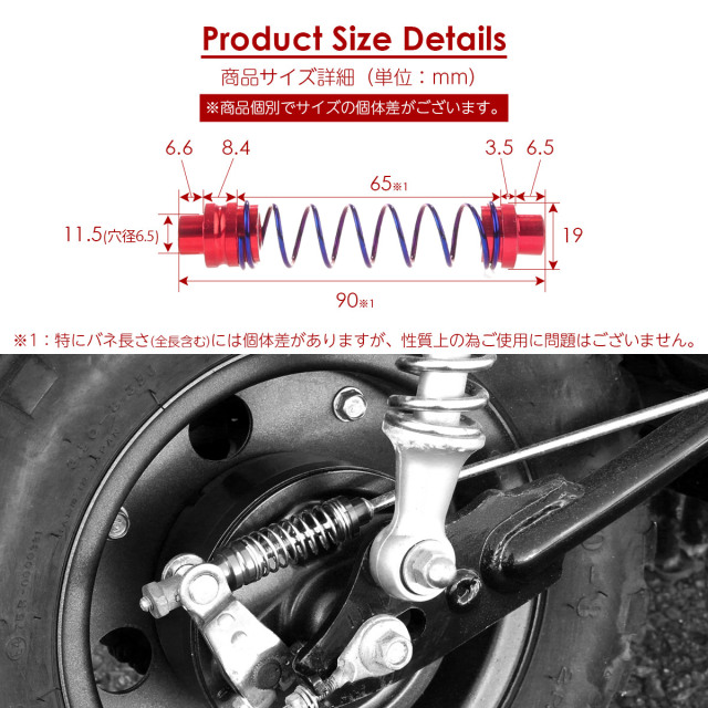 | 【要ご確認】 ・全長(バネを含む)は商品個別に誤差がございます。 ・スプリングカラーは商品個別に色合いが異なる場合がございます。 (※極端にサイズや色合いが異なる等の場合はご対応致しますのでご連絡下さい。) |