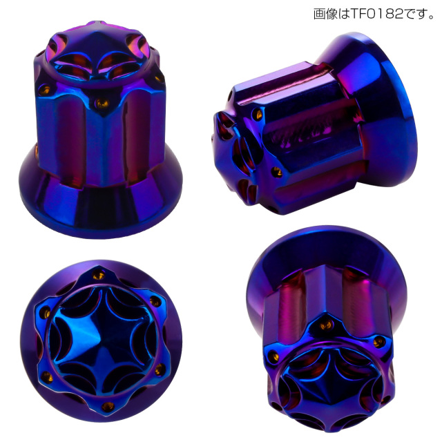 トップ部分の星形の切削加工の周りには、ホール穴加工が施されたデザイン性の高い袋ナットです。