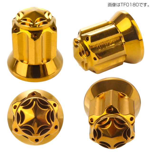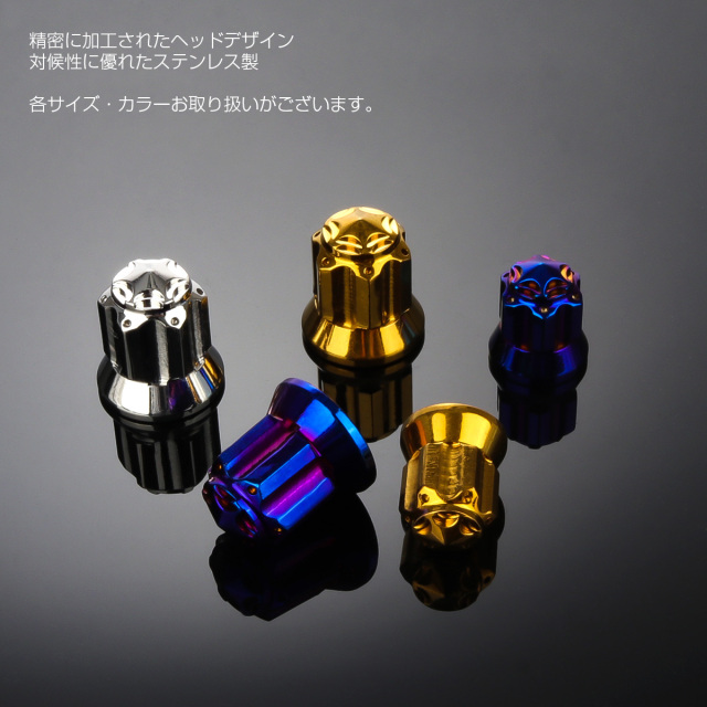 マフラーを取り付けるナットと交換したり、リアショックの取り付けや、ボルトのネジ山を隠してドレスアップしたい場所など、サイズが合えば様々な箇所にご使用頂けます。