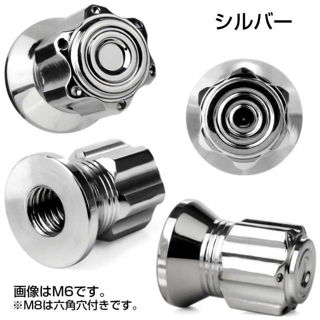 マフラーを取り付けるナットと交換したり、ボルトのネジ山を隠してドレスアップしたい場所など、サイズが合えば様々な箇所にご使用頂けます。
