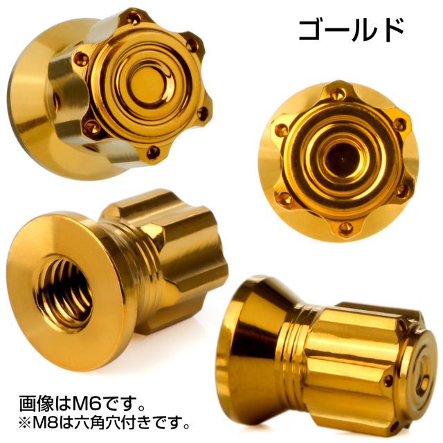マフラーを取り付けるナットと交換したり、ボルトのネジ山を隠してドレスアップしたい場所など、サイズが合えば様々な箇所にご使用頂けます。