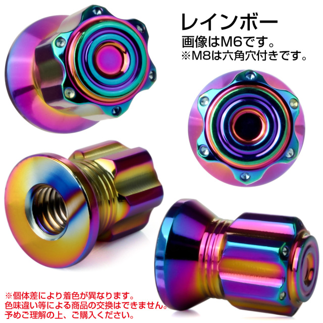 マフラーを取り付けるナットと交換したり、ボルトのネジ山を隠してドレスアップしたい場所など、サイズが合えば様々な箇所にご使用頂けます。