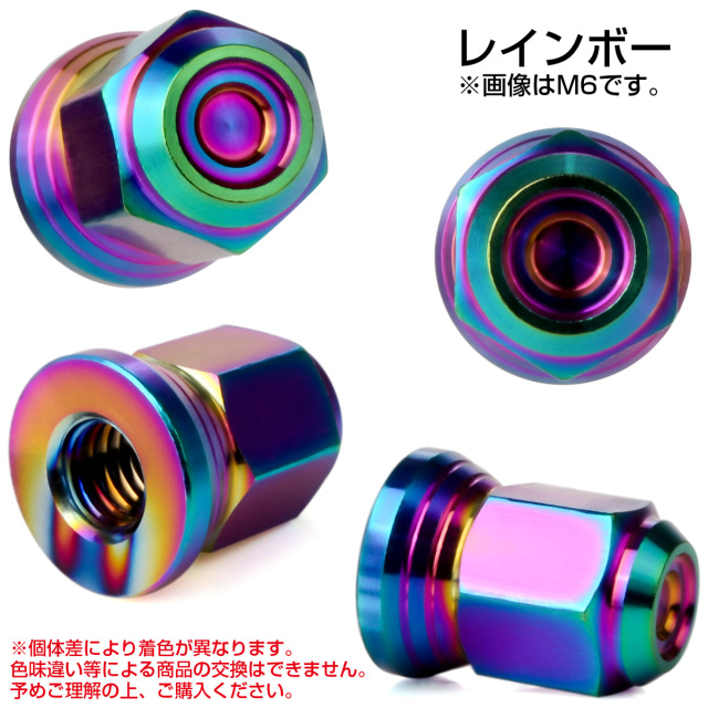 マフラーを取り付けるナットと交換したり、ボルトのネジ山を隠してドレスアップしたい場所など、サイズが合えば様々な箇所にご使用頂けます。