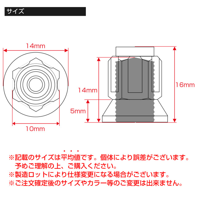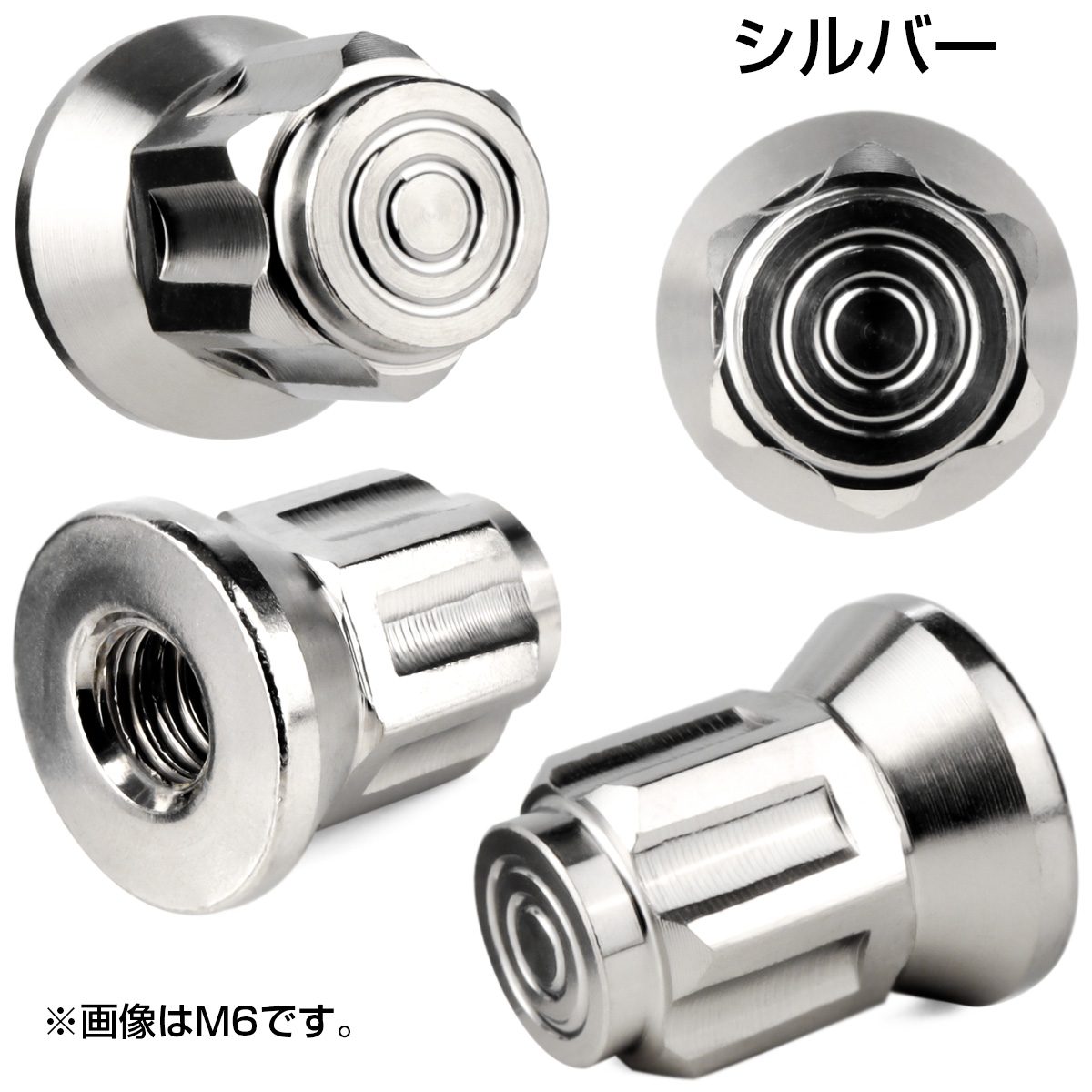 マフラーを取り付けるナットと交換したり、ボルトのネジ山を隠してドレスアップしたい場所など、サイズが合えば様々な箇所にご使用頂けます。