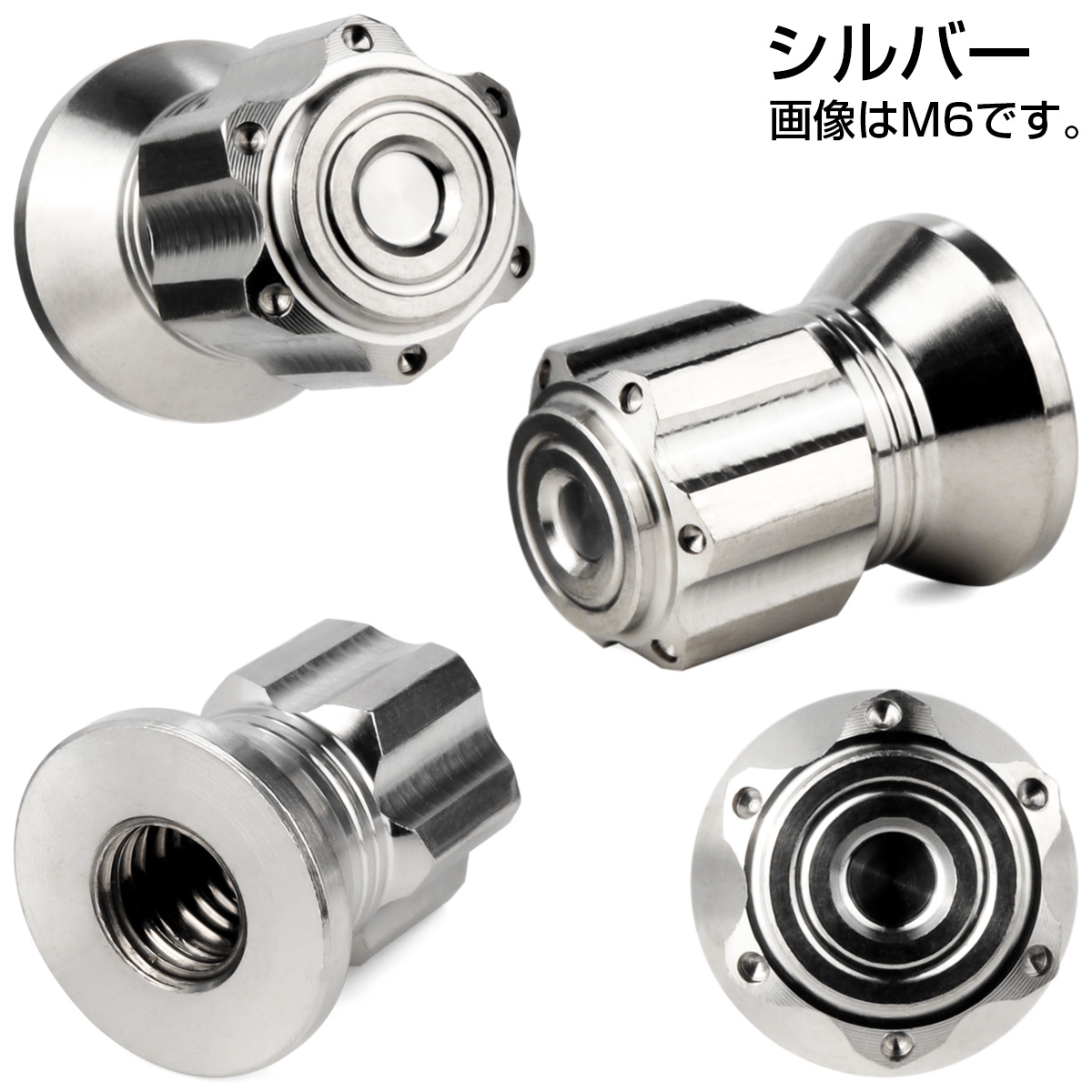 マフラーを取り付けるナットと交換したり、ボルトのネジ山を隠してドレスアップしたい場所など、サイズが合えば様々な箇所にご使用頂けます。