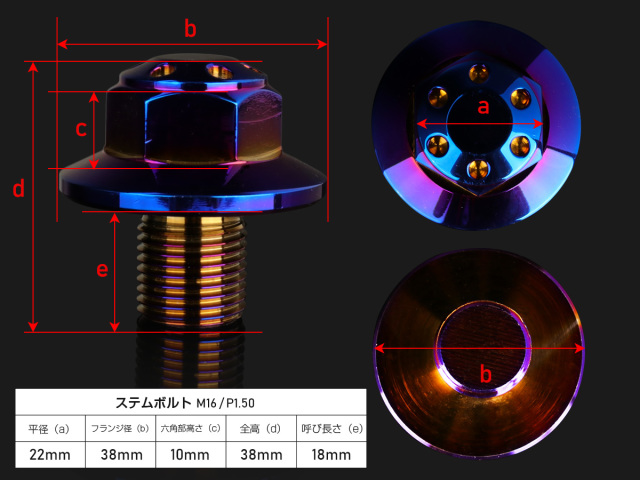 ステンレスを丁寧に削り出し、メッキを施した美しい光沢とデザイン性を備えたステムボルト。