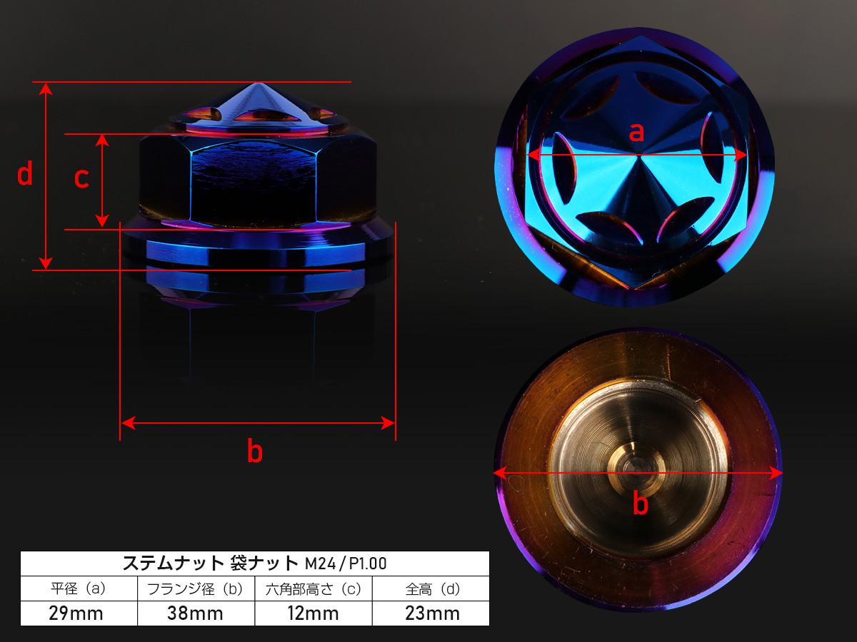 ステアリング ステムナット M24 P1.00 スターヘッド SUSステンレス ホンダ車 焼チタンカラー TH0155