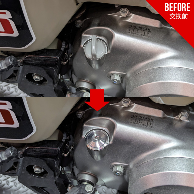 既存の純正オイルフィラーキャップと取り換えるだけ。