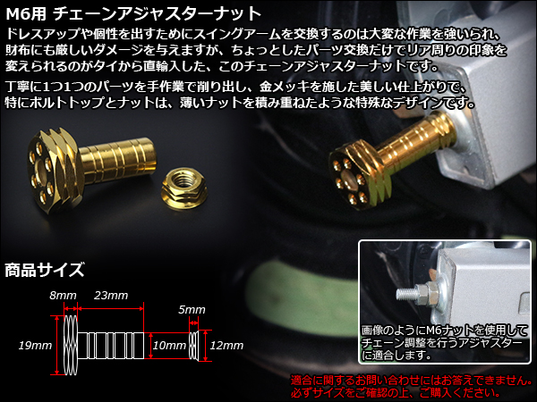 | ■M6 P=1.00のチェーンアジャスターナットと交換してドレスアップ! |