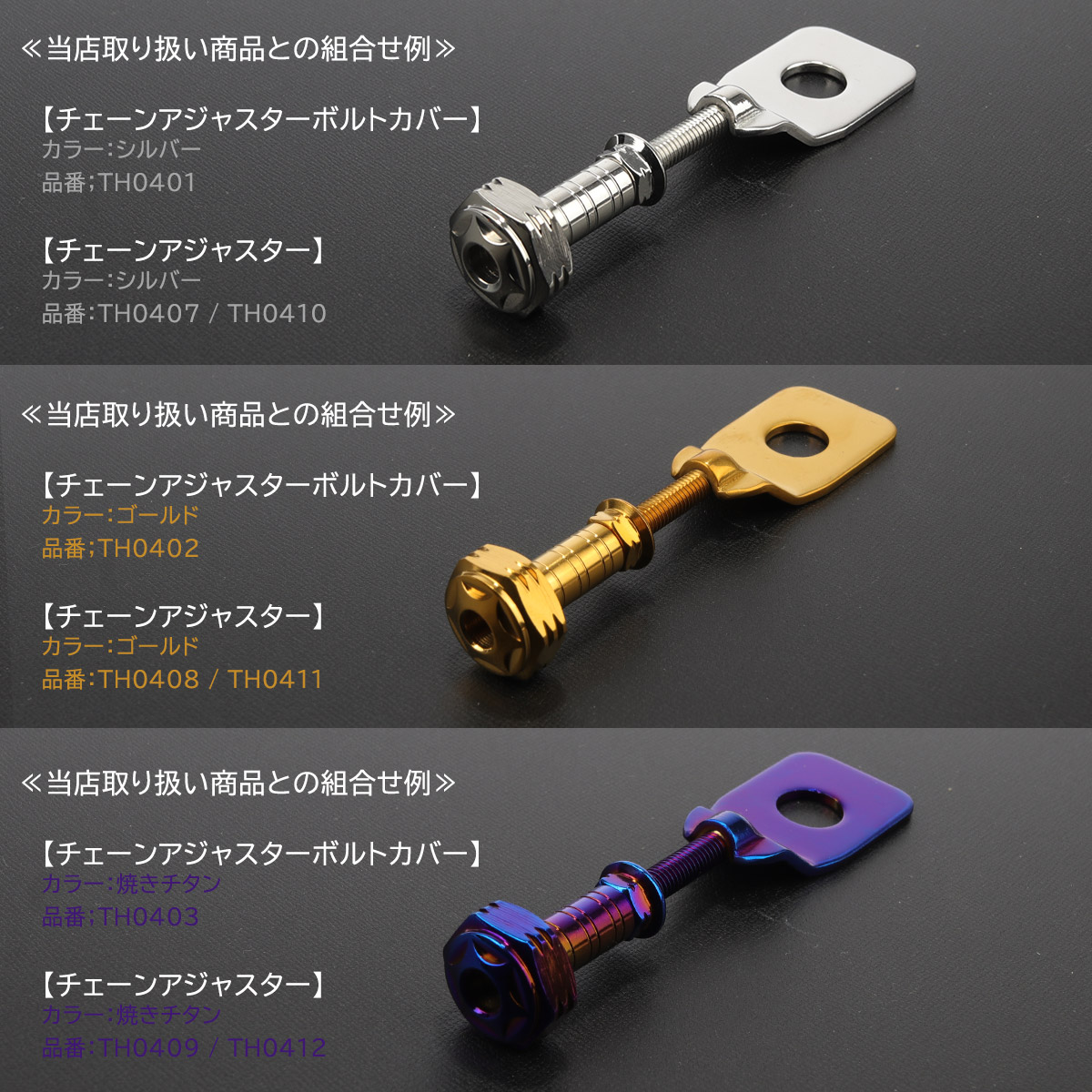 ドライブチェーンの調整用ボルトを錆や泥汚れといったダメージを軽減できるボルトカバー。