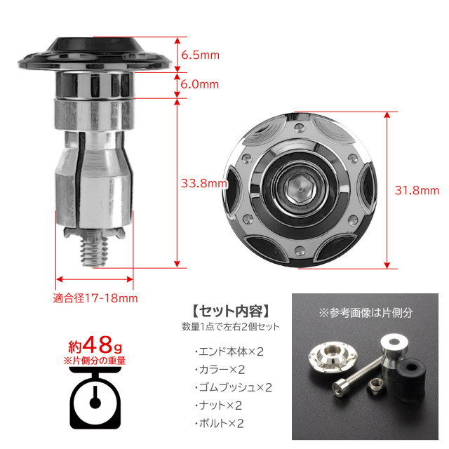 強度があり錆びや熱に強いステンレスを丁寧に削り出したバーエンドキャップです。