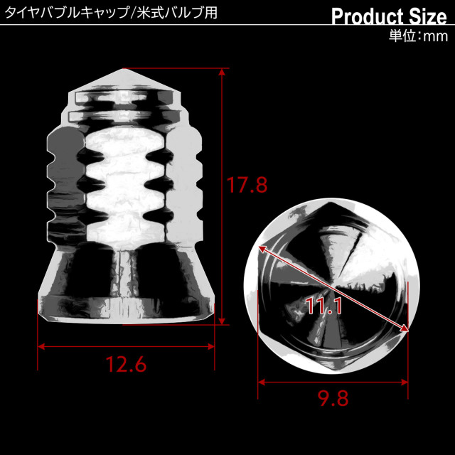 高強度ステンレス製で装飾カットデザインが美しいタイヤエアバルブキャップ。