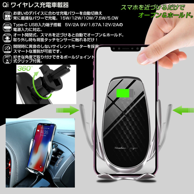 デバイスをかざすだけで自動オープン&ホールドしてくれるQiワイヤレス充電対応のスマホ車載器。
