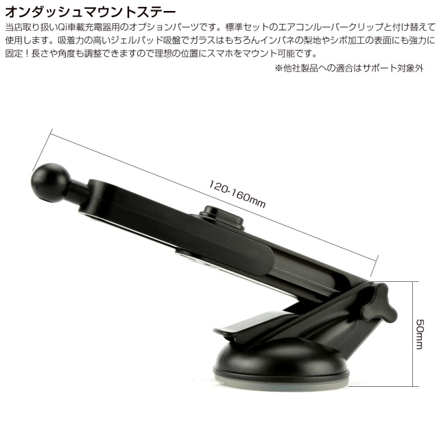 | ※本品は当店取扱いQi車載充電器のオプションパーツです。他店製への適合はサポート対象外です。 ※マウントステーのみで充電器本体は付属していません。 |