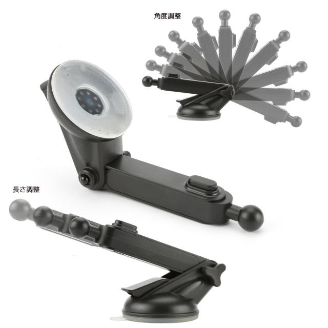 吸着力の高いジェルパッド吸盤でガラスはもちろんインパネの梨地やシボ加工の表面にも強力に固定!