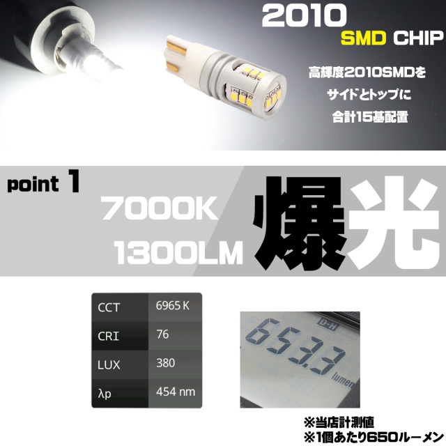 • 爆光 1300ルーメン 接続部 高級仕様 T10 LED ウェッジ バルブ 2個セット ホワイト 12V 24V 兼用 15SMD搭載 ポジション球 バックランプ などに A-163 【メール便可】