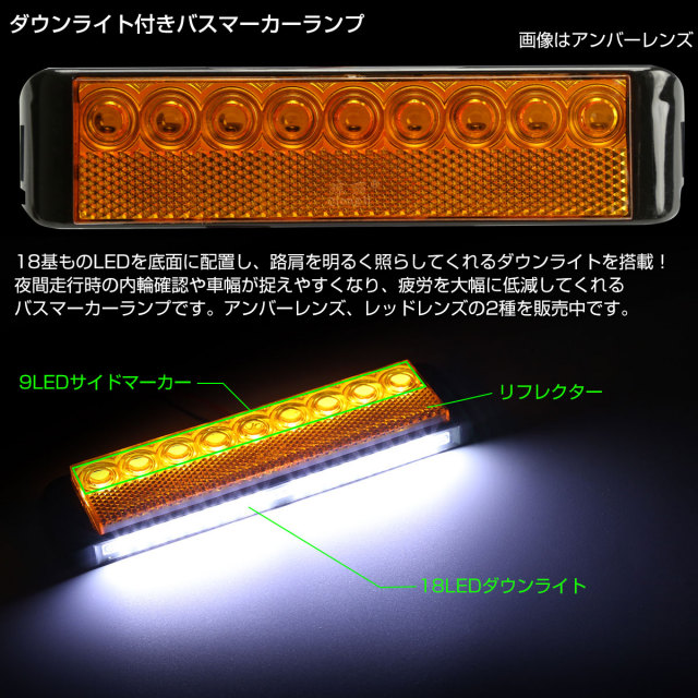 LED ダウンライト付 スリム バスマーカー 角型 路肩灯 タイヤ灯 側方灯 トラック サイドマーカー リフレクター搭載 F-256-F-257