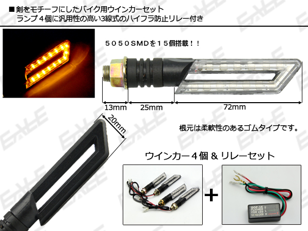 汎用 剣型LEDウインカー4個&ハイフラ防止リレーセット( F-28 )