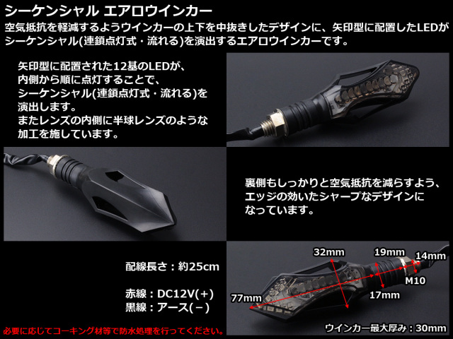 シーケンシャル 連鎖点灯式 流れる LEDウインカー エアロ スモークレンズ SMD12基搭載 アンバー発光 2個セット