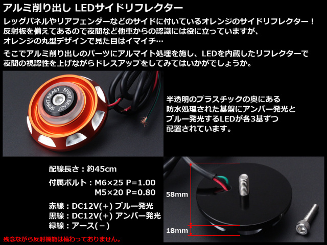 アルミ削り出し LEDサイドリフレクター 3色発光 Φ60mm SMD6基搭載 2個セット ボディカラー3色