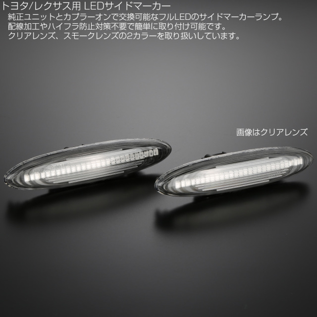 LED サイドマーカー クリア トヨタ 18系クラウン ゼロクラウン カムリ 120系マークX レクサス 30系 IS250 350 190系 GS350 430 F-511 【メール便可】