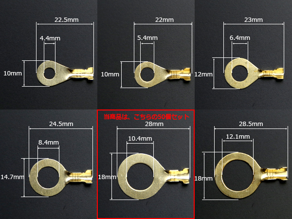 丸型端子 穴径10mm 10Φ 50個セット アースコードの接続に ( I-183 ) 【メール便可】