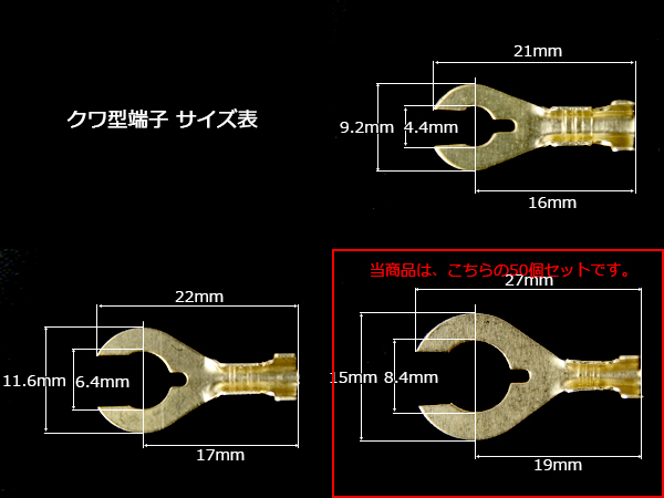 クワ型端子 穴径8mm 8Φ 50個 アースコードの接続に ( I-187 ) 【メール便可】