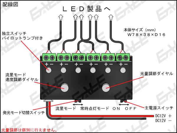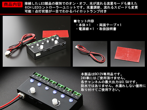 汎用 6CH LED コントロールユニット 調光可能 流星モード ( I-301 ) 【メール便可】
