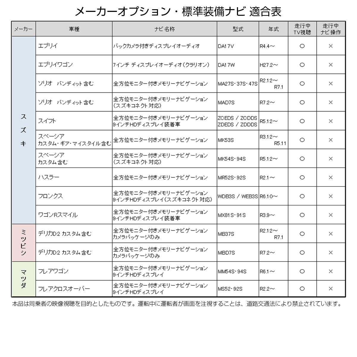 テレビキャンセラー ハスラー ソリオ スイフト スペーシア フレア デリカD2 9インチナビ 全方位モニター対応 カプラーオン テレビキット 走行中TV視聴 I-606【メール便可】